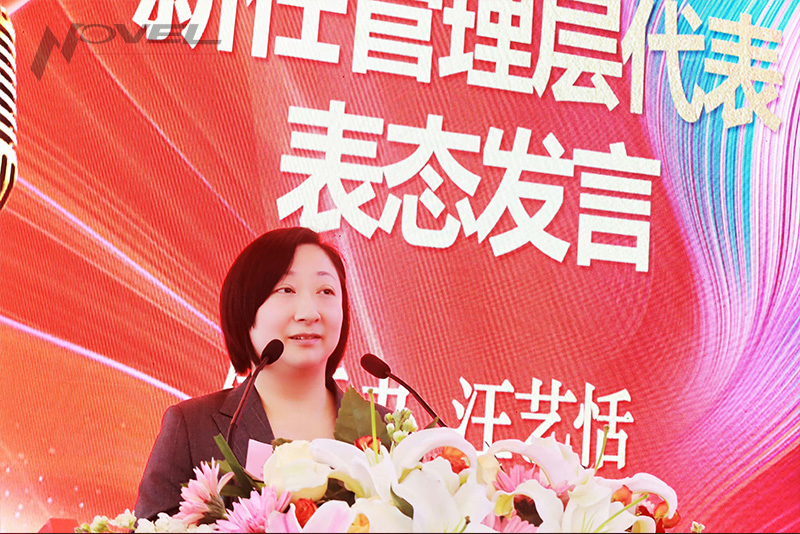 管控組組長、總經(jīng)理助理孫峻宣讀《關(guān)于2025年中層管理人員聘任的決定》。體系辦經(jīng)理兼管理者代表汪藝恬作為新任管理層代表作表態(tài)發(fā)言。
